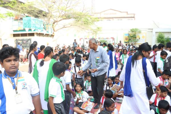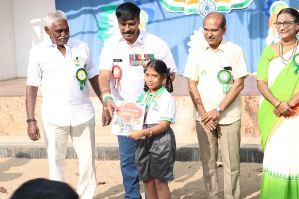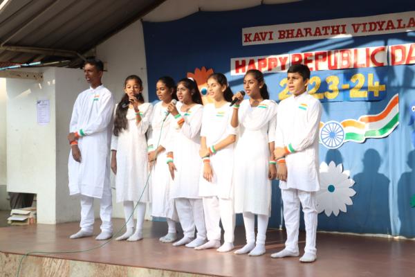 On 26/1/2024, KAVIBHARATHI VIDHYALAYA celebrated the 75th Republic Day with great fervor and patriotism. The event commenced with the unfurling of the national flag by our esteemed chief guest, Mr. M. Pazhanisami, a distinguished ex-army officer whose service to our nation embodies courage and commitment.As the tricolor unfurled, the entire school atmosphere was charged with patriotism. The National Anthem echoed, resonating the spirit of unity and pride. Students and staff stood in solemn respect, embodying the true essence of our national identity.Following the National Anthem, Our school SPL Sharaneshwaran took the pledgeThe Flag Song, a musical ode to our national flag, added a melodious touch to the celebration. A warm welcome speech was delivered by Our school SPL Sharaneshwaran, expressing gratitude to the chief guest, teachers, students, and parents for their presence. Adding a vibrant touch to the program, a welcome dance kummi was performed by our school students . They enthralled the audience with their graceful movements, celebrating the cultural diversity that unites our country.Following the welcome dance, our school student “Zeenath” of class 5 delivered a powerful speech in English, emphasizing the importance of democracy, unity in diversity, and the significance of the Constitution. The speech resonated with the audience, instilling a sense of pride and responsibility., The melodious notes of a patriotic Hindi song “Desa bhakthi geeth” filled the air, with students singing in unison, expressing their love for the motherland. The heartfelt lyrics and soulful music captivated everyone, fostering a sense of unity. The cultural mosaic was enriched by a Tamil drama that portrayed the struggles and triumphs of our freedom fighter V. O. Chidhambaram pillai. The performance beautifully conveyed the historical significance of Republic Day. Subsequently a mesmerizing classical dance performance added grace and elegance to the celebration. The intricate movements and expressive storytelling through dance left the audience spellbound, showcasing the artistic talent of our students.Following the classical dance, Our esteemed chief guest, delivered an inspiring speech, emphasizing the importance of NCC, fostering a sense of national pride, and encouraging students to actively participate in the sports Next, the School Vice president Mrs. Jagadheeshwari shared words of encouragement, acknowledging the efforts of both students and teachers. The speech highlighted the school’s commitment. Subsequently, Students who excelled in Thirukural and Hobbies day competitions were honoured., Finally, The vote of thanks delivered by Roshan Abhishek of class 9B, Ultimately, The celebration concluded with the distribution of sweets, symbolizing the sweetness of unity and shared patriotism. Students exchanged smiles and good wishes, fostering a sense of camaraderie.The Republic Day celebration was a testament to the school’s dedication to instilling values of democracy, unity, and patriotism among its students, ensuring a bright and harmonious future for our nation