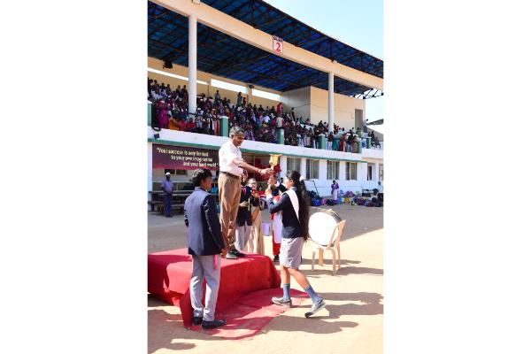 A synchronized mass drill performance showcased students’ teamwork and discipline, earning enthusiastic applause. The Annual Sports Report, presented by Headmistress Ms. Gayathri, highlighted the achievements and progress of students in various sporting events throughout the year.