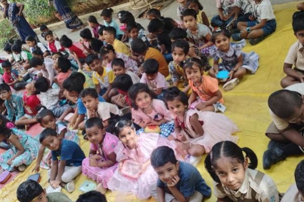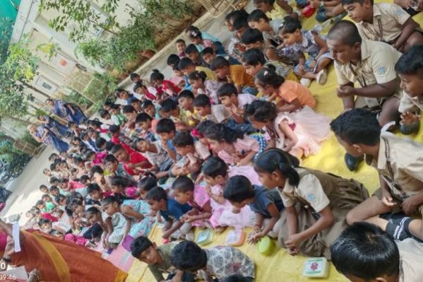 The snacks were not just delicious but also vibrant, healthy, and eye-catching. Most of the Aval snacks were beautifully packed in banana leaves, and children used wooden spoons to enjoy their sweet, sour, and tangy treats — adding a traditional touch to the celebration.