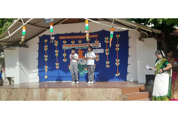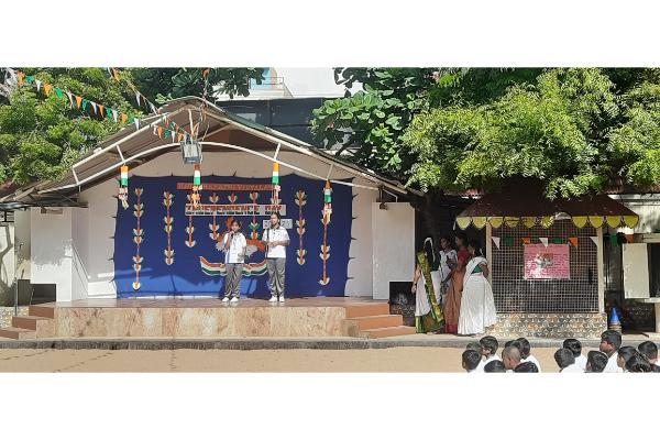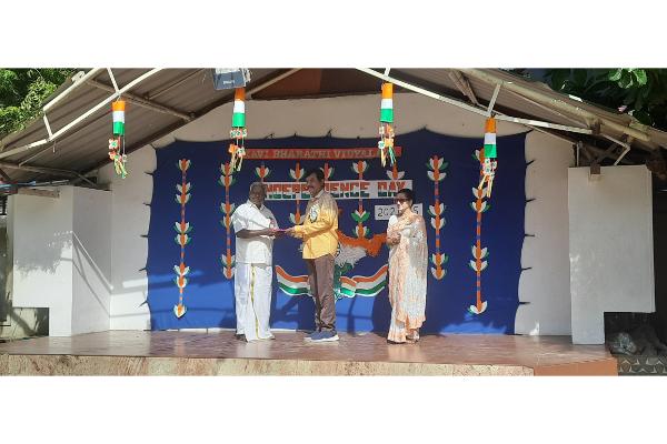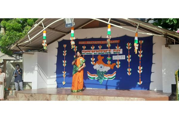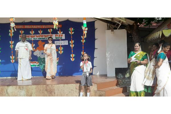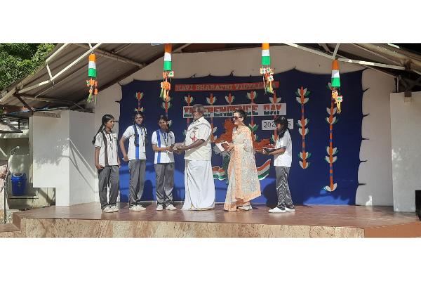78th Independence day of India was celebrated with much fervor, gaiety and patriotism at Kavi Bharathi Vidyalaya this morning. The celebration was attended by around 400 students and 200 parents along with board members, office bearers and staff of the school.The cultural program was a mix of patriotic songs both in Hindi and Tamil, dance, speech and an English skit on the revolt of 1857.The program ended with sweet distribution to all attendees.