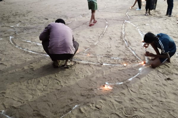After lighting the clay diyas, sweets were distributed to everyone. Everyone returned home with a spiritual mindset.