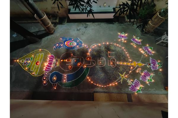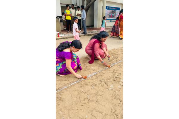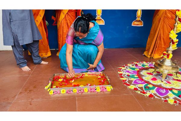 Kavi Bharathi Vidyalaya celebrated Karthigai Deepam on 16th December 2024 with devotion and joy. The festivities began with a soulful prayer song, followed by the traditional lighting of the lamp by grandparents. Floating diyas and radiant rangoli by teachers and students filled the campus with light and colour. Students in vibrant attire, accompanied by their parents, added to the festive cheer.