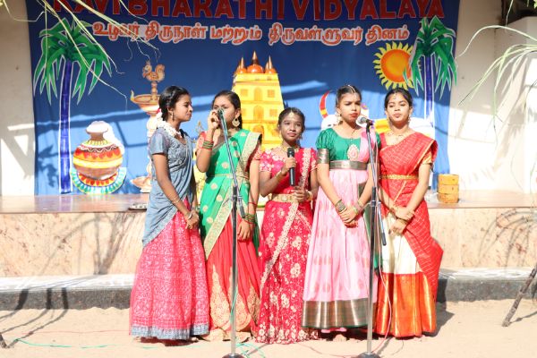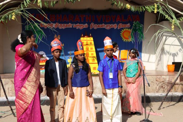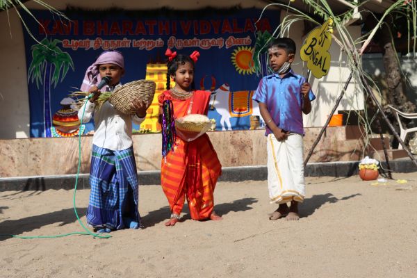 Kavi Bharathi Vidyalaya celebrated Pongal on January 13, 2023. Our board members Mr. Suresh Karthikeyan, Mr. Puvanendran, Ms. Renuka Devi, Ms. Krishna Devi, Ms. Mala Thangaraj, and Ms. Kokila graced the occasion. Smartly dressed in colorful ethnic wear, students performed many enthralling songs, dances, and quiz programs. The intricately drawn designs of special Kolam filled the school grounds manifesting a rich treat to the beholder’s eyes. The mouth-watering ‘Chakkara Pongal’ cooked in a beautifully painted pot by our staff was offered to the divine in all plausible sanctity and later distributed to the Students, Teachers, and Support Staff. The entire campus wore a festive look with colorful Rangoli, decorated Pongal pots, sugarcanes, and other decorations enhancing the festival spirit.