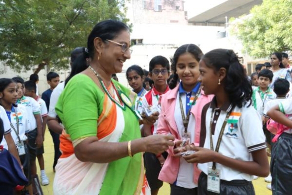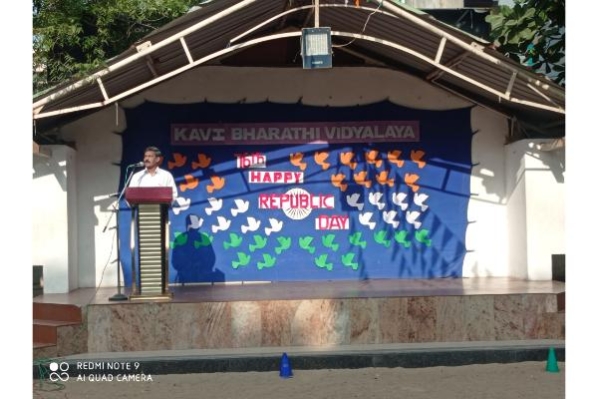 The 76th Republic Day was celebrated with great enthusiasm at our school on 26th January. The event began with the unfurling of the National Flag by our esteemed Chief Guest, Mr. S. Parthiban, grandfather of U. Sanamika (II-A)and U. Ashviek (UKG-A), followed by the National Anthem and Flag Song.