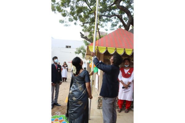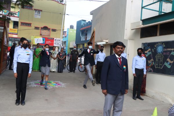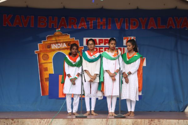 In Kavi Bharathi Vidyalaya, the 72nd Republic Day of India was observed with great patriotic fervour. The chief guests, Mrs.MohanaPriya, Mother of Sainath,Class IX were welcomed. The Indian tricolour flag was raised by our chief guests, principal and the P.E.T teachers to start the celebration. To recognise the significance of this day, our students arranged a brief cultural event on the school grounds that featured a flag song, unity dance, Deshbhakti Geet, and a synchronisation of patriotic motions. Our board members bestowed their blessings on the pupils, and the day was filled with patriotic zeal and spirit.