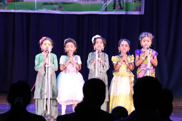 Tiny tots and Blooming kids was held in Rajah Annamalai mandram on 17th of February, Saturday. Tiny tots started by 5pm and ended by 6:25 pm after which the students were dispersed and the next show, Blooming kids started by 7pm and ended by 9:30pm.Mrs D. Ashwini, P/o K. Shravan 4A, the joint secretary of Class parent association was the Chief guest and Mrs. Unnamalai, a member of Avvai Illangathirgal was the guest of honor for the Tiny tots entertainment program.Mrs K. M Vijaya Bharathi, director and founder of alphics kids paradise presided over the function as the Chief guest and P. Satyakala, a member of Avvai Illangathirgal was the guest of honour for blooming kids.Prayer followed by the Welcome Address , lighting the kuthuvilakku and array of entertainment programs was the agenda.After which we had the official function following which we had the finale program for both tiny tots and blooming kids.All the programs were eye catchy .